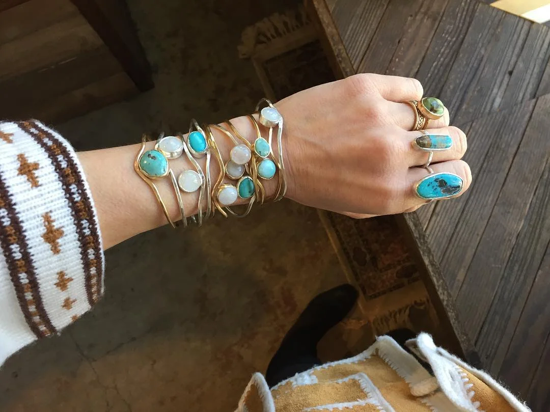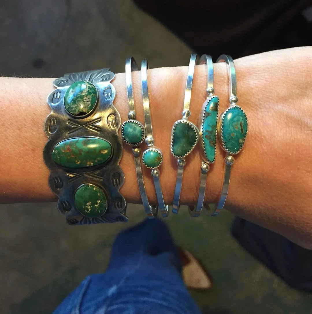Stoked on these new #madeinsacramento #oldgoldexclusive Sterling and Arizona turquoise cuffs ๐ call the number in our bio to purchase ๐#shoplocal #walpublicmarket